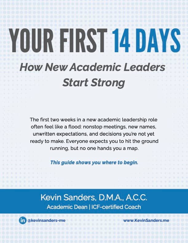 A clear, practical playbook for new leaders navigating their first two weeks in higher ed leadership.